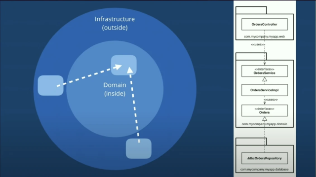 Clean Architecture(也稱為 Hexagonal Architecture 或 Port and Adapter)的核心原則是依賴方向應該從外向內,並以 Business Layer(Domain)作為最重要的核心。外層的元件需要依賴這個核心。Business Layer 負責定義商業邏輯,並透過 Interface(介面)提供依賴方法,讓外圍的元件進行互動。