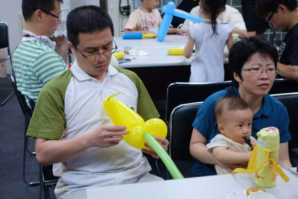 雖然折氣球有些困難,但拔拔們還是發揮他的萬能的威力!! Just do it!!