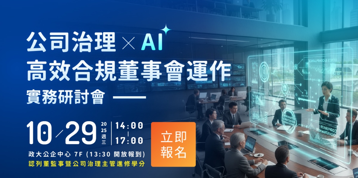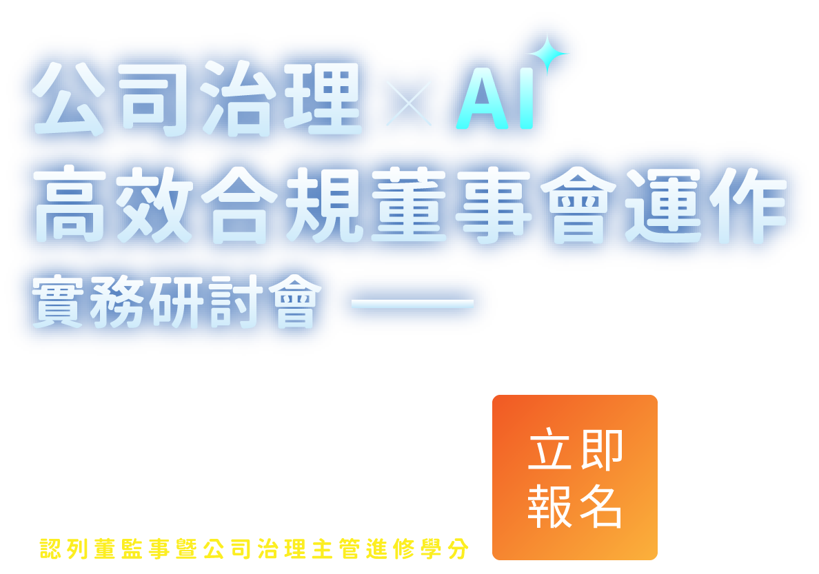 在數位轉型加速與法遵要求日益嚴格的時代,董事會的治理效能日益受到重視。董事在公司治理中扮演關鍵角色,然而部分董事未必深入參與公司日常經營,對業務細節掌握有限,因而潛藏不少法律風險。因此,如何善用 AI 等新興科技,在確保董事會高效運作的同時,協助董事充分發揮監督職能、降低潛在法遵風險,已成為重要課題。