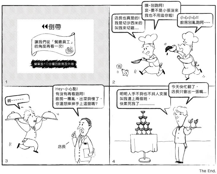 前陣子跟朋友在一家著名日本料理聚餐,裝潢豪華店面,滿滿的客人在用餐,抱著期待心情進去後卻有個很不好的用餐經驗,這時心中暗自打算以後都不會再去那家餐廳了。讓我們來看當天發生的情況,如果您是店長,會如何看待這麼混亂的場景?