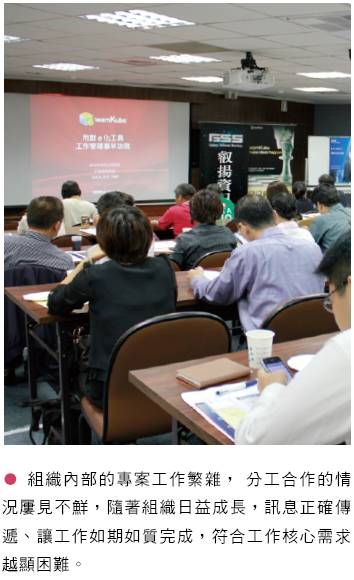 teamKube 工作管理系統是以「交辦」、「會議」與「活動」為核心主軸的 e 化協同作業環境,將所有會議與交辦工作串聯起來。張嘉真 強調,在工作執行的各個階段中,teamKube 能匯集工作夥伴的智慧、討論內容、文件,並 完整勾稽工作軌跡,有效提升組織執行力,同 時,打破人事時地物的限制,讓工作經驗成為 組織成長的資產。「過往,業務一旦離職很多 客戶來往的資訊都會隨風飄逝,對於公司來說 是一大損傷。」透過teamKube 這套平台能夠 完整記錄專案活動歷程,提升管理及縮短新手上路時間,能真正落實效能提昇。