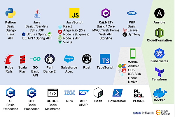 Secure Code Warrior 平臺目前支援超過 60 種語言及框架。