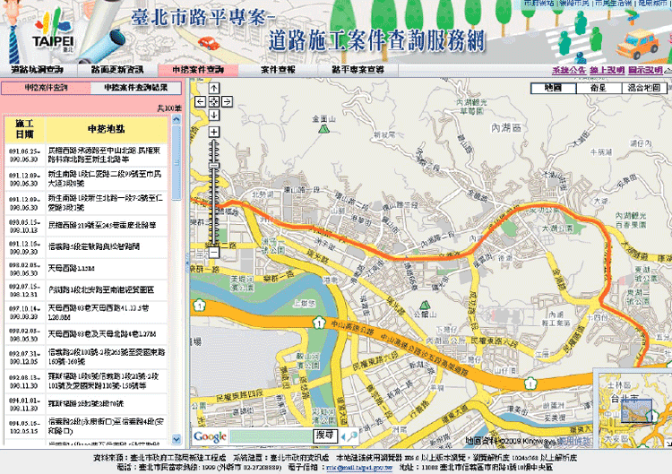 「道路施工案件查詢服務網」清楚呈現道路施工的線狀區塊