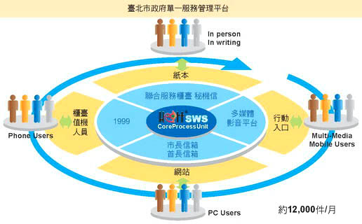 目前1999市民熱線的話務量,平均每月約有70,000通,加上來自市長信箱的案件,每月約有12,000件的申訴、檢舉案件,列入台北市政府單一申訴窗口列管,並派送至所屬業務局處辦理,同時管控案件的處理時效。單一申訴系統就如同是1999市民熱線的CPU(Core Process Unit),是掌管為民服務效率的核心機制,更是台北市政府各局處間線上溝通的重要平台。運作此單一申訴窗口平台的資訊系統,即為叡揚資訊所開發的自有產品Heart-SWS知識型單一服務管理系統。