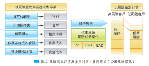 因此以風險量化為基礎之利率架構(Risk-Based Pricing)如圖二所示,其組成應包括以下計算:
