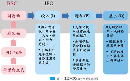 在諸多衡量模型中,平衡計分卡(BSC -- Balanced Score Card)算是最典型的其中一個。它建議我們在財務、顧客、內部程序、學習與成長等四個構面中,平衡考量績效衡量的指標,同時兼顧長期與短期、內部與外部、財務與非財務,以及領先與落後等指標的平衡,就整體所欲衡量的結果而言,具有相當的代表性。然而,當我們試圖將績效衡量模型予以資訊化時,卻又很自然的發現,平衡計分卡對於績效產生的過程,衡量稍嫌不足。