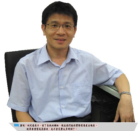 現在新系統的架構完整,操作上也較以前順手,特別是在報表的製作與查詢,及資料的統計上也很方便。何定遠表示,之前的舊系統在報表的產出是以txt 檔為主,不但閱讀不易,也無法依單位的需要進行資料的修改或重製。但新系統上線後,我們把所有的參數值與條件清楚設定在系統裡,就能依實際需要產出適合的報表,就算要重製或修改也不會花太多時間。