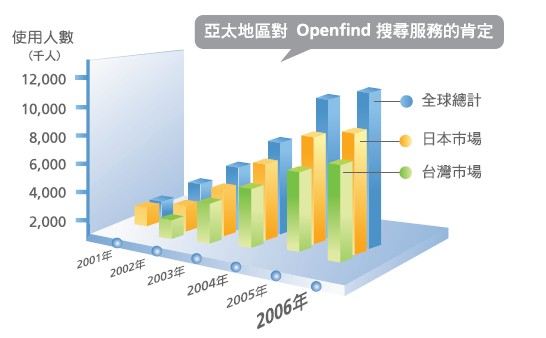 網擎資訊Openfind專注於企業資訊搜尋系統已經有八年以上的時間,海內外也累積超過2,000家企業客戶,其中日本市場已經超過500家中大型知名企業導入。實際使用Openfind搜尋解決方案的用戶數,於2006年底已經突破一千兩百萬人。近年來無論在政府或是企業單位都有相當亮眼的銷售成績,並榮獲經濟部「創新研究獎」、工業局「數位內容獎」與「台灣精品」等殊榮,這些來自市場與客戶的鼓勵,都是驅動Openfind不斷創新的原動力。