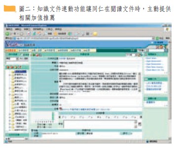 雖然陳光誠客氣的說,由於導入的時間還不是很久,也做的不盡完整,但導入知識管理系統後,在工作中的許多應用,也開始讓他及同仁們感受到過去沒有效益。他舉例說,以前公司同仁在MIS設定或遇到問題時,總是要由MIS的人員幫忙處理,現在都可以請同仁先在知識管理系統中找到相關文件,看著文件中的說明自行先處理,若不行再由MIS的協助處理,無形中也節省不少人力及時間,也較以前方便許多。