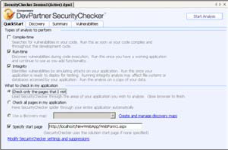 程式開發人員可以在SecurityChecker中以手動方式,選擇準備作檢測的應用程式範圍;或以自動方式,指示SecurityChecker準備進行整個應用程式的分析與掃瞄。