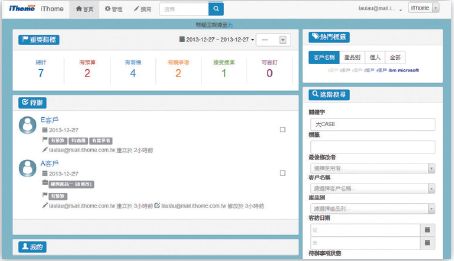 而後續的客戶經營計畫,像是寄送報價單等事項,也可記錄在待辦事項中,並標示為未完成以提示使用者。平時檢視工作報告狀態時,透過管理平臺首頁即可一目了然,像是重要指標會顯示各分類的報告統計數字,待辦區塊也會顯示在畫面中間的位置,易於工作檢視與管理。該介面下方有我的報告、最新報告等顯示區塊,右側邊欄則提供熱門標籤與進階搜尋功能。整體來說,區塊介面配置相當易於檢視。