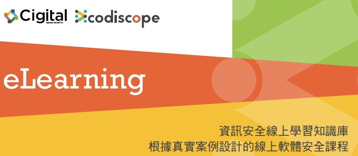 Cigital Codiscope eLearning軟體安全線上課程針對重要課程已推出全中文化內容,無縫接軌國際專業資安課程,以貼近台灣客戶學習需求。開發人員可依需求選擇合適課程,也讓企業可透過測驗結果,具體掌握學員學習進度,全球包括知名資安大廠及手機廠商皆已使用多年。