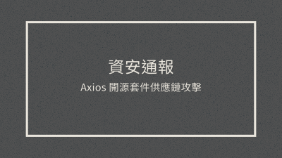 近期開源套件社群發生一起供應鏈攻擊事件,影響廣泛使用的 JavaScript HTTP 套件 Axios。由於該套件非常熱門,影響範圍涵蓋開發環境、CI/CD 環境與相關系統,特此發布資安通報,建議貴單位進行相關檢查與因應處理。