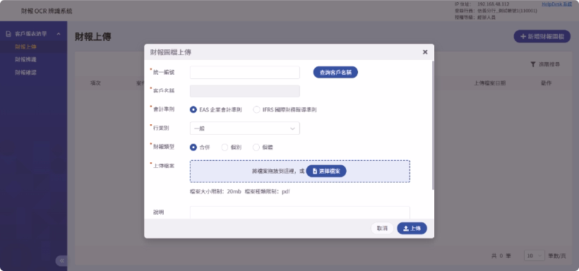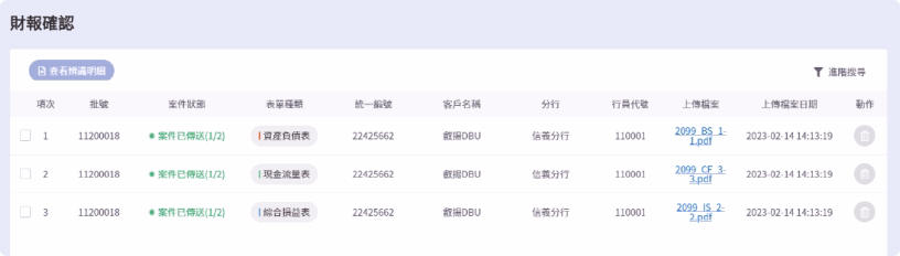 支援API串接,將辨識後財務報表轉至後續應用系統(如會計系統、徵授信系統)
