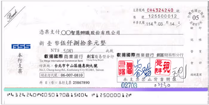 手寫的發票或收據辨識,能處理手寫、複寫紙字跡,並自動檢核邏輯