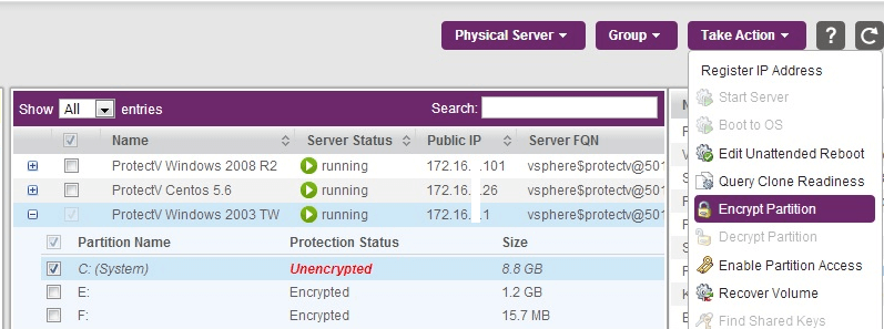 將磁碟區進行加密工作,保護虛擬主機實體資料檔案