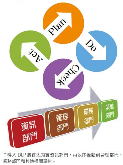 導入DLP 將首先落實資訊部門,再依序推動到管理部門、業務部門和其他相關單位。