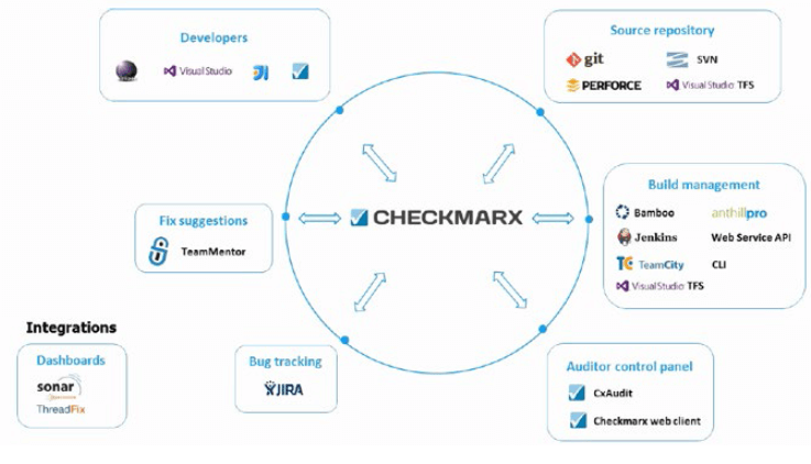 Checkmarx 具有足夠的靈活性與SDLC 無縫接軌,支援最常見的建構伺服器,或者您可以執行簡單的API,以流暢操作簡單的環境,提供優質的SAST(靜態應用程式安全測試, Static Application Security Testing)