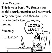 - 新樣態的入侵手法—入侵銀行越來越困難,於是駭客使用電子郵件對網路銀行客戶進行「釣魚」。60%的銀行曾遭受釣魚手法攻擊11,過去幾年的釣魚攻擊整整高漲了8倍之多12。釣魚手法儼然成為最新的攻擊手法,而且攻擊系統能力不亞於其他手法。一旦網銀系統被成功入侵,帳號資料也勢必曝光。釣魚手法是種凌遲受害者的攻擊手法,分段的竊取帳號資料。大多數的銀行已經採取非常手段,以網路面、應用程式面和軟體開發流程技術,保護網路銀行系統。