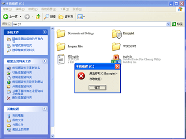 使用者/群組無法存取,即在ProtectFile Manager中的Shared Access Policies設定中沒有設定的帳號,皆沒有權限存取該資料匣內的加密檔案。